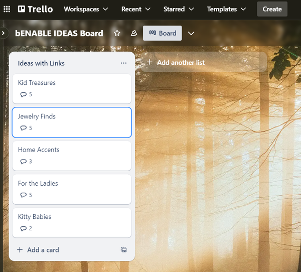 your lists like the example below using a Trello Board. Or, you can simply build your lists right in Benable. Just select and click the "hide" button so the board isn't visible until you're all set with a complete list.